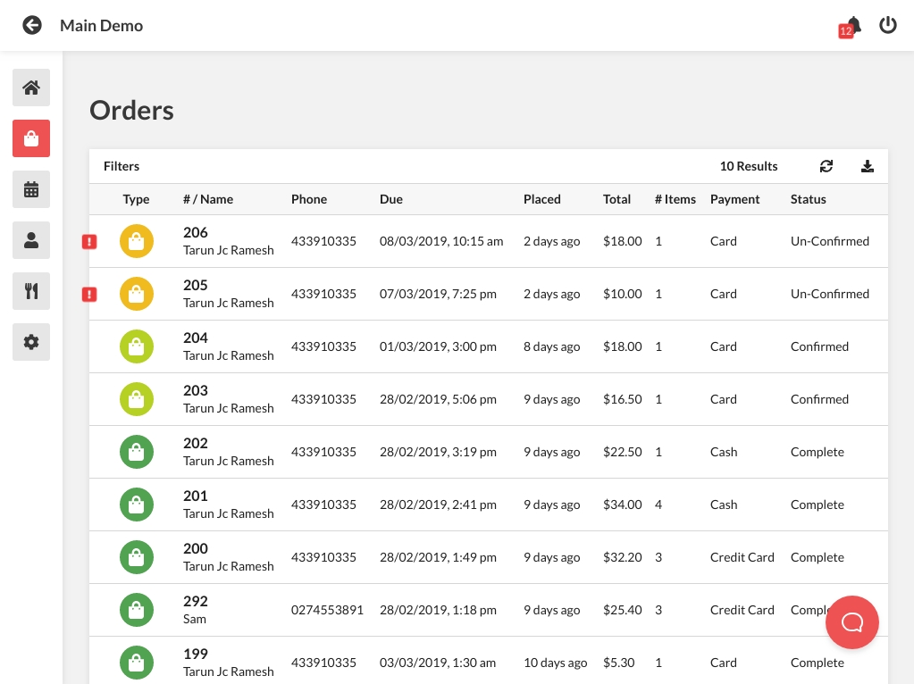 Finally, mark orders as complete when the customer collects it or the food has been delivered.