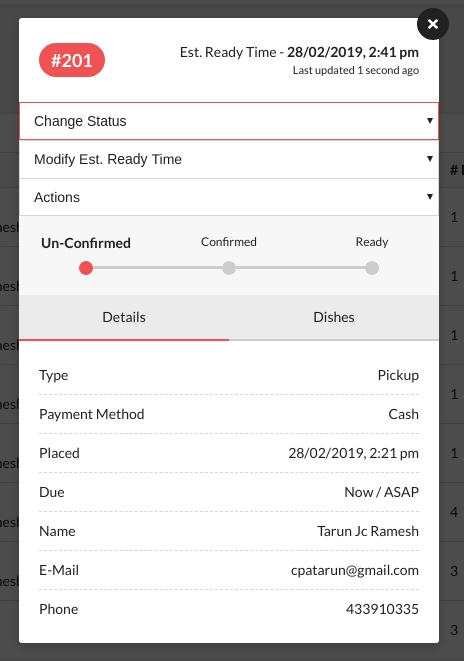 || If you are unable to prepare an order by the due time, you increase the due time manually. Click an order to view the details. Using the "Modify Est. Ready Time" select bar, add the extra time required to prepare the order. This way your customers are aware of any delays.